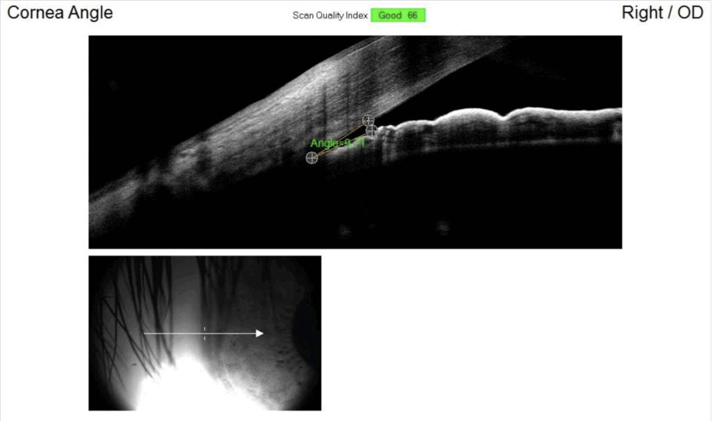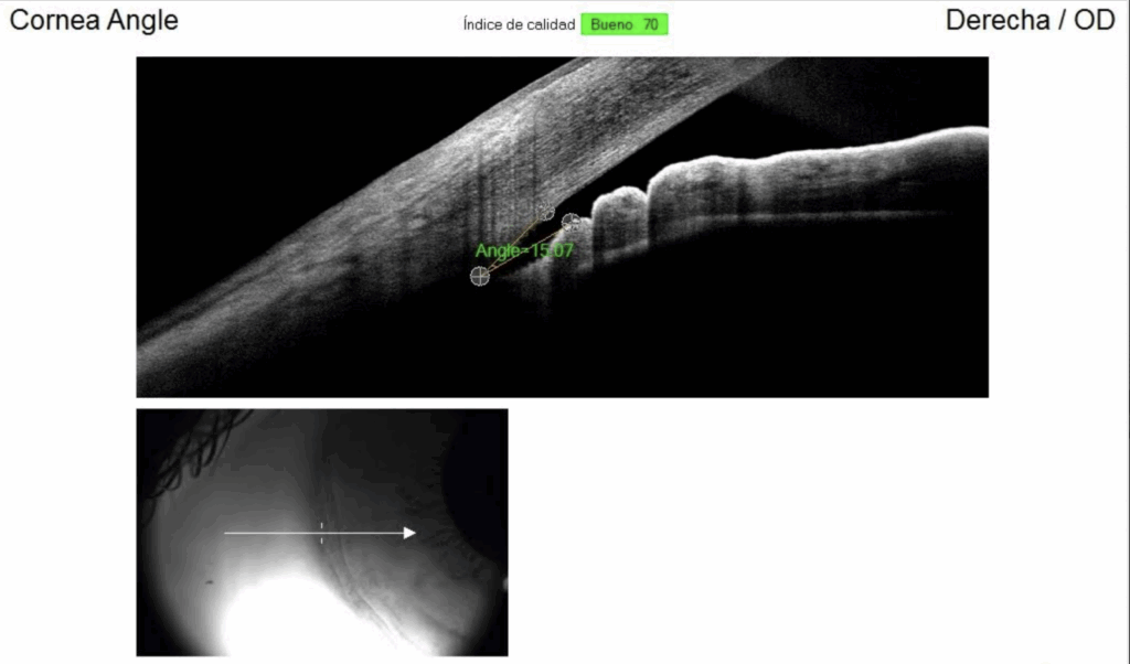 Abajo se pueden ver imagenes de OCT con diferentes Angulos Iridocorneales , algunos abiertos y otros estrechos.
