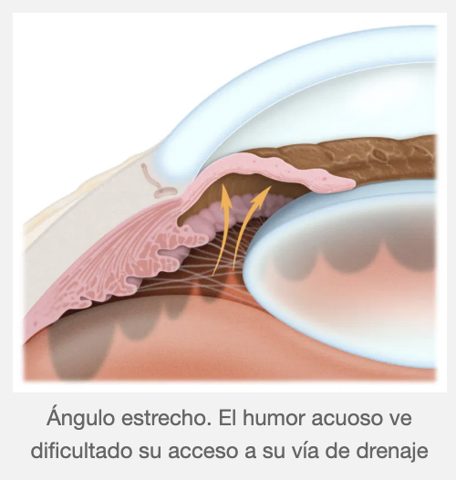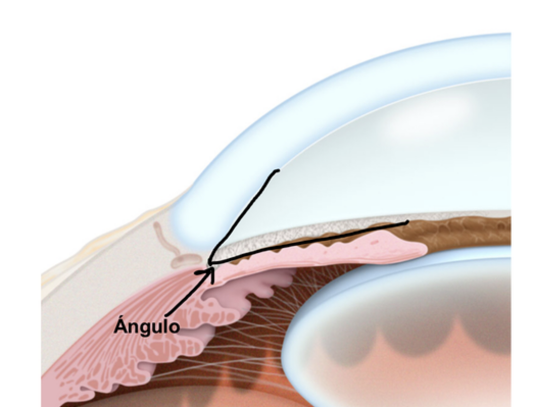 Cuando el Iris se acerca mucho a la cornea y el angulo se achica se denomina Angulo estrecho.