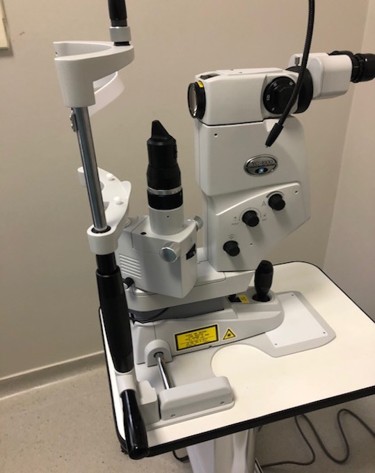 EL equipo de la foto de abajo es el YAG LASER que usamos para hacer las Iridectomias