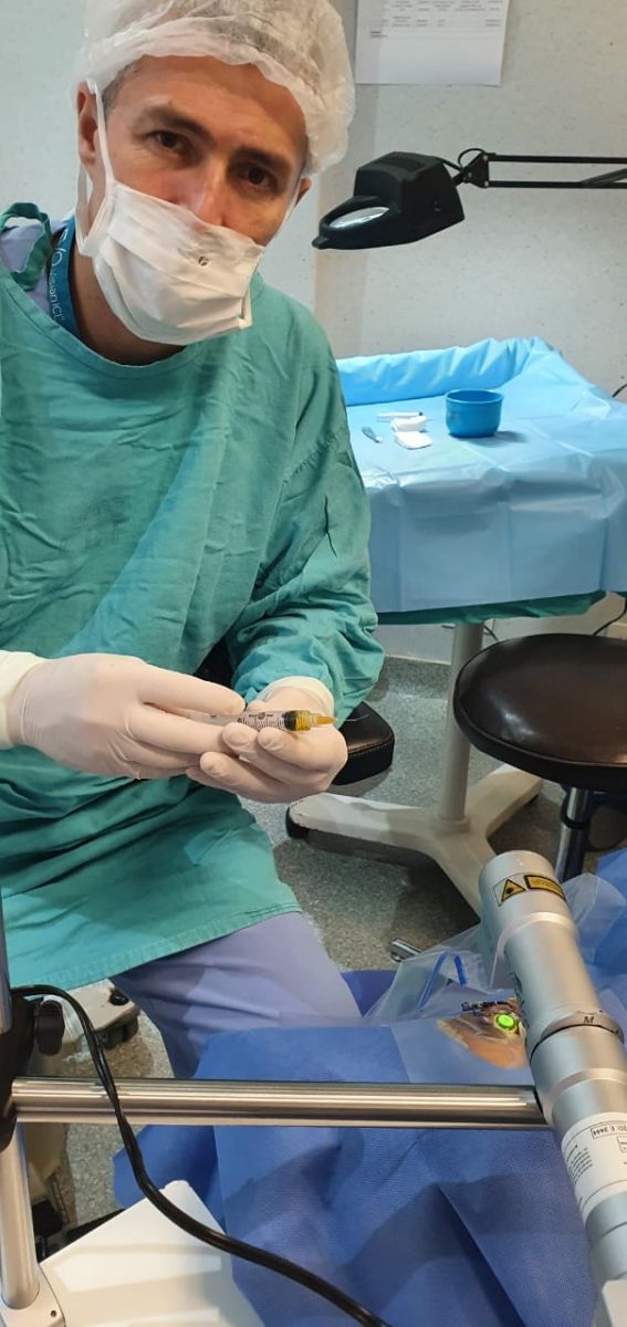 El Cross Linking es un procedimiento que consiste en aplicar Luz UV, focalizada en la cornea, luego de haber colocado en la cornea Rivoflavina durante 30 minutos.